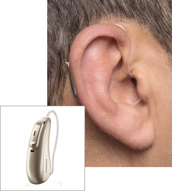 A RIC hearing aid consists of a tiny housing containing all electronics except the receiver, which is positioned behind the ear. A thin tube connects the housing to the receiver, which is worn in the ear canal.